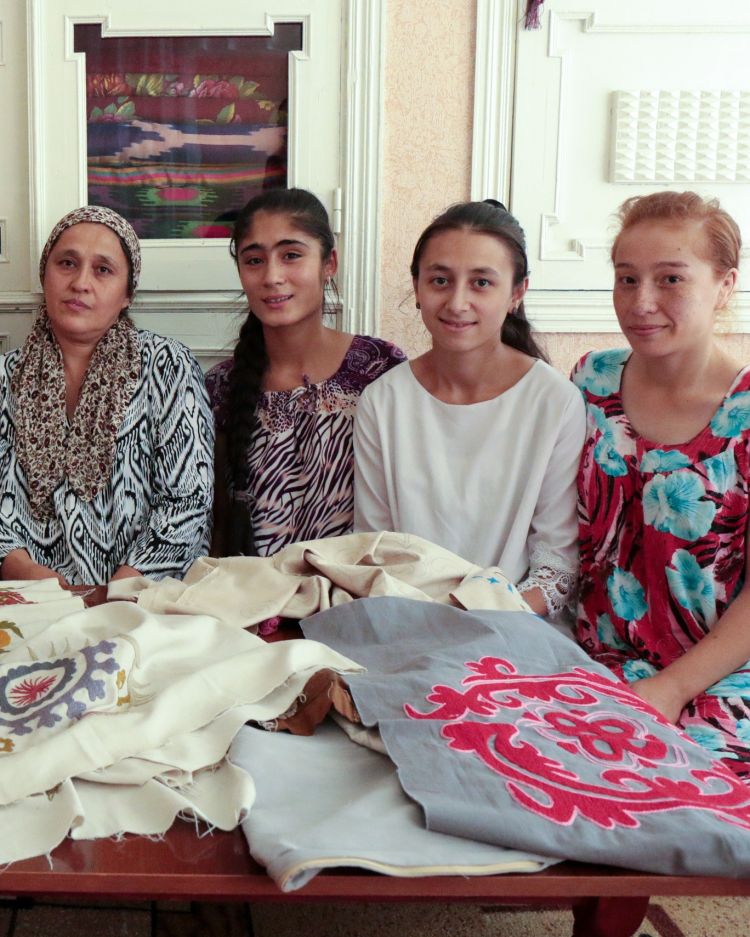 Seit rund 5 Jahren leitet sie nun die Armugon-Handwerksgruppe, in der verschiedene Frauen auf dem alten Stickereihandwerk ausgebildet werden und so für sich und ihre Familien ein Einkommen generieren können. Für jemanden zu sticken bedeutet in den Kulturen Zentralasiens, seine Energie für diese Person zu investieren. So bestickten in früheren Zeiten die Mütter und Grossmütter die Suzanis für ihre Töchter mit ihren guten Wünschen.