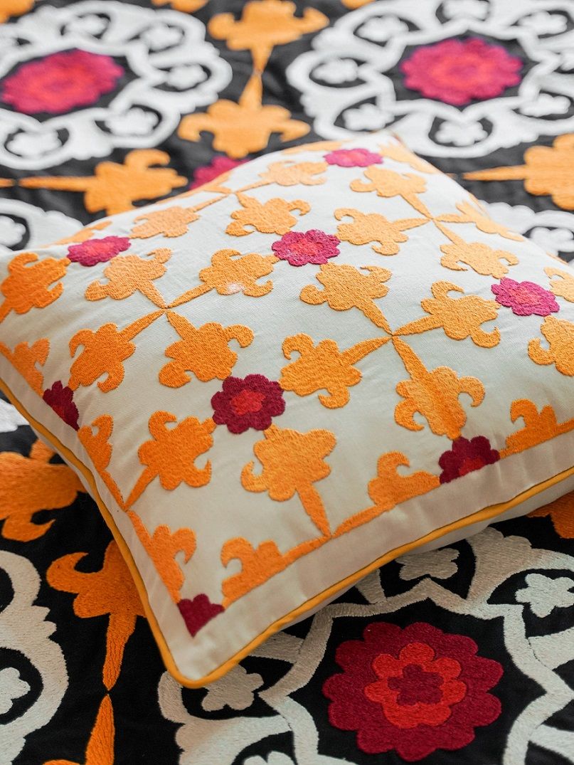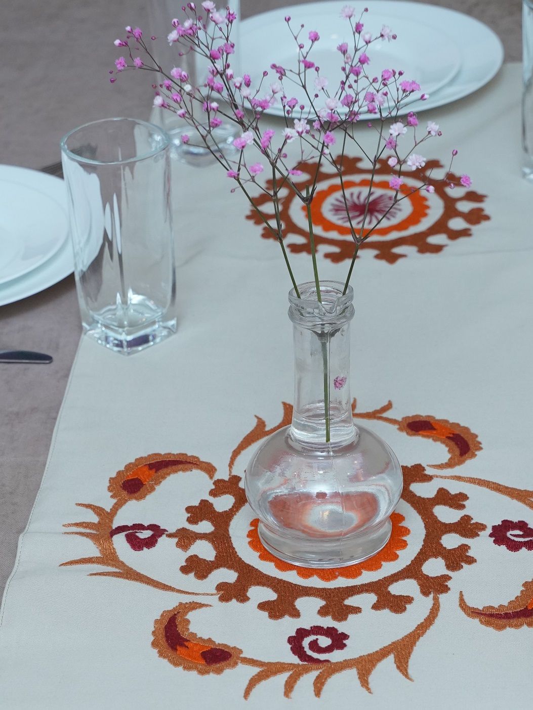 Das Wort Suzani kommt vom persischen Wort «Suzan», was Nadel bedeutet. Charakteristisch für die Stickereikunst Zentralasiens sind die grossen Wandbehänge, die einen wichtigen Platz im Haus und im Leben der Menschen einnehmen. Die außergewöhnliche Vielfalt an Ornamenten, die Harmonie und Ausdruckskraft der Motive verdienen Staunen und Bewunderung.